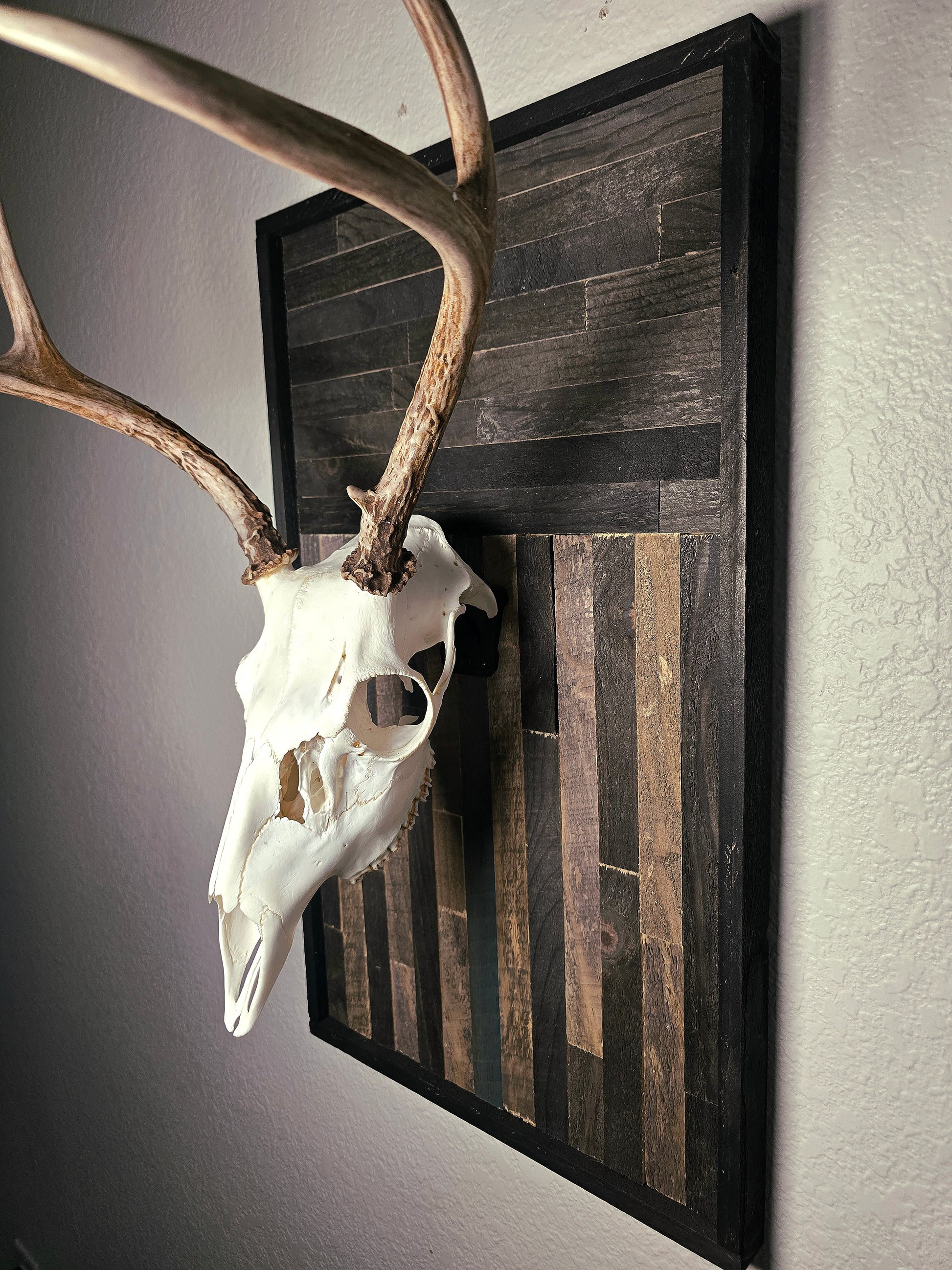 An attention-grabbing way to display your euro mounts. Suitable for deer and other mid-sized game. Plaque measures 14" wide by 24" tall. Mounting bracket is center mounted but can easily be adjusted to obtain the perfect look depending on the size of your trophy.